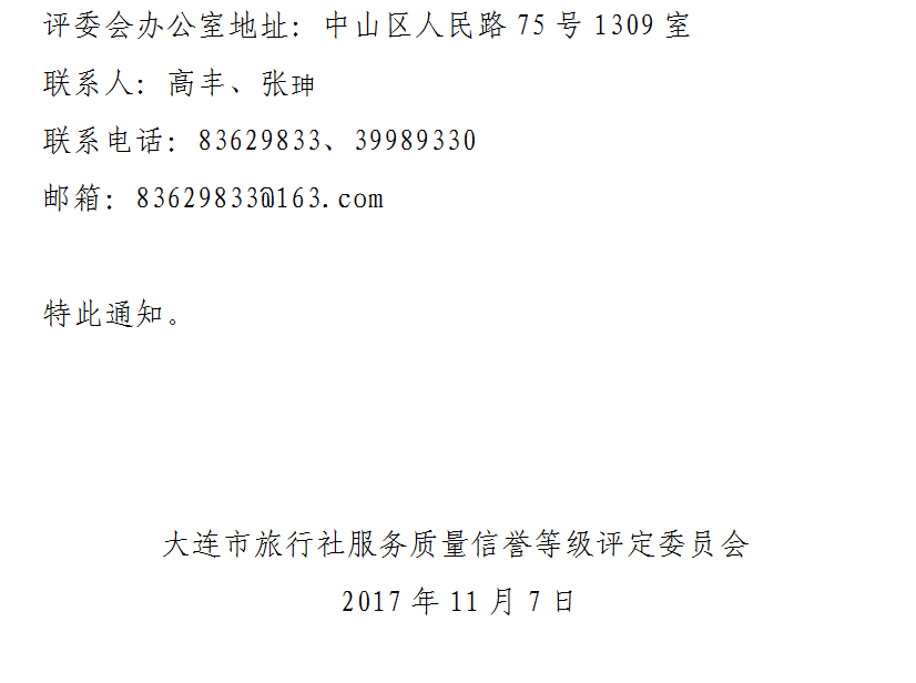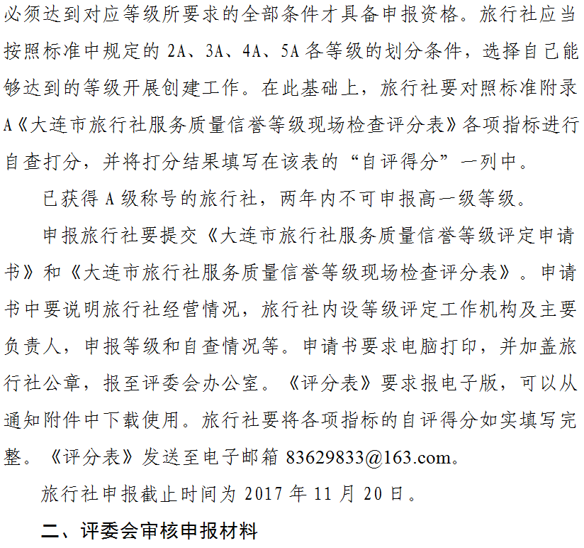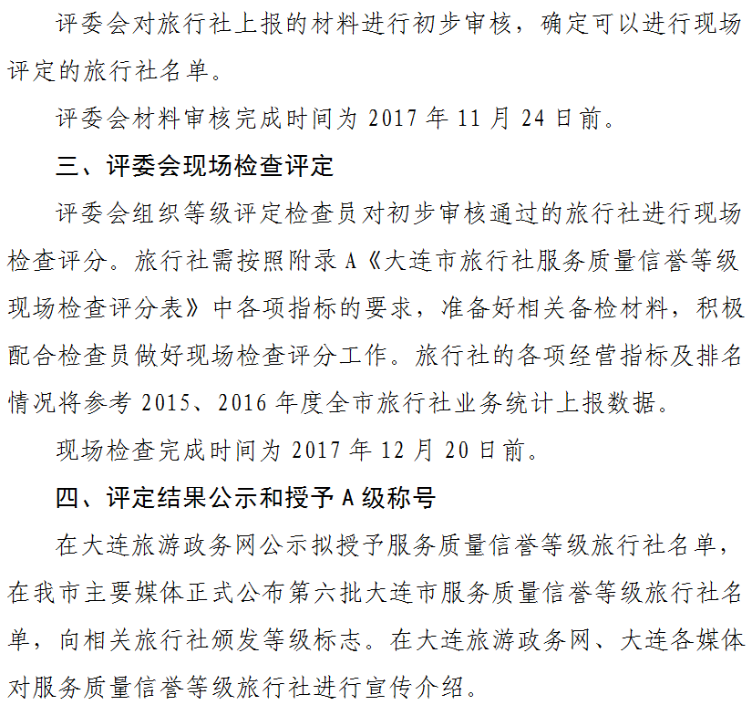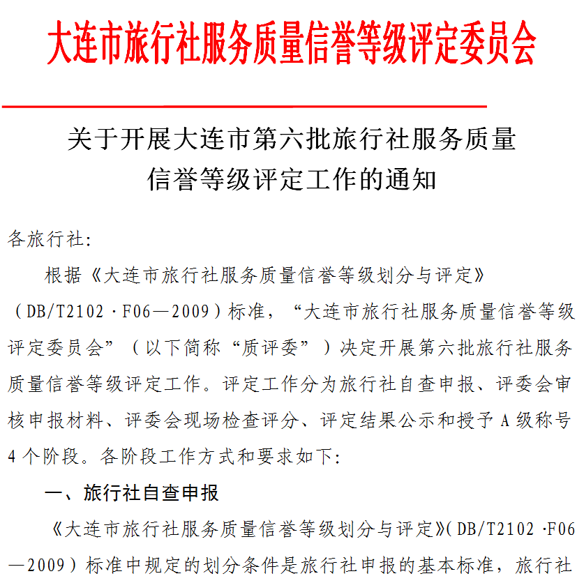 关于开展大连市第六批旅行社服务质量信誉等级评定工作的通知